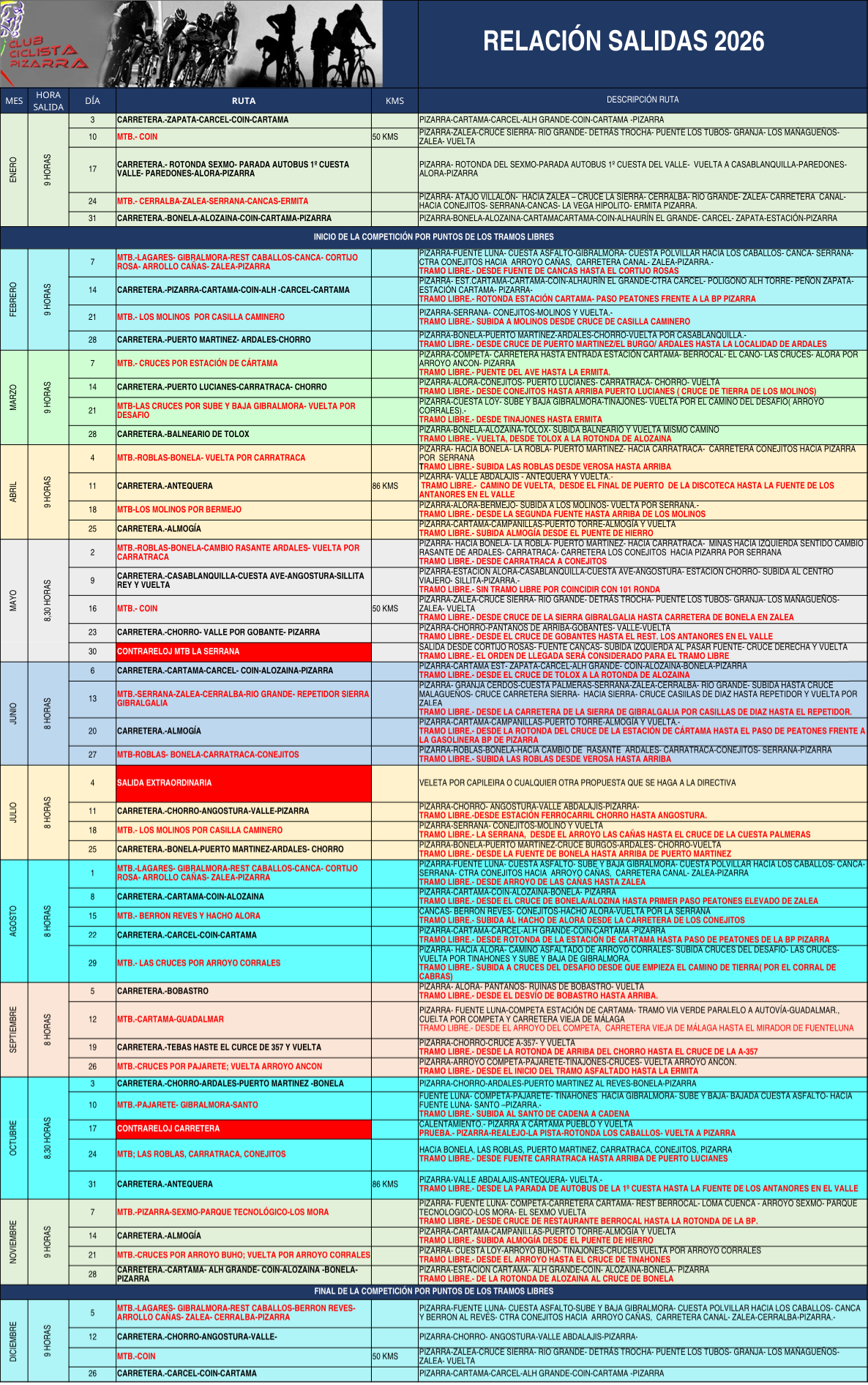 SALIDAS OFICIALES DEL CLUB CICLISTA DE PIZARRA